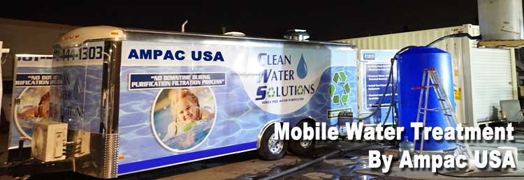 Mobile water treatment is ideally used for no fixed infrastructure facilities like industrial or distant agricultural facilities with run-off or no water reclamation operations and emergency response operations. With a very innovative and highly technical water treatment application, 85% of the swimming pool water is conserved at the Ampac USA's home state of California. Without this system, all of this water would have been discharged.